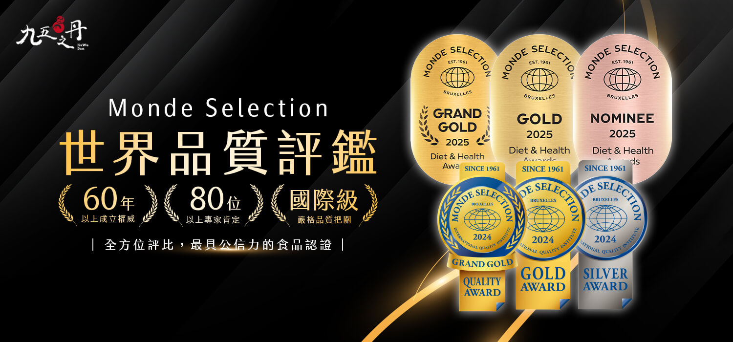 Monde Selection成立於1961年,總部位於比利時,是全球歷史最悠久、最具公信力的品質評鑑機構之一。 與荷蘭A.A. Taste Awards、比利時iTQi及英國 GreatTaste並列世界四大美食獎,被譽為食品界的奧斯卡獎。 由世界各地80位以上的營養學家、化學博士、健康專家等組成專業評審團,進行嚴格的多項科學測試與專業評分。 依照評比分數結果:特金獎(90-100分)、金獎(80-89分)、銀獎(70-79分)、銅獎(60-69分) 每年全球超過數千件產品參賽,最終僅有極少數產品能獲得金獎、特金獎等榮譽,象徵頂尖品質。 獲得特金獎和金獎代表產品在安全性、效果、品質、設計等各方面皆達到最高標準,為全球品質認證的最高榮耀。什麼是世界品質評鑑大賞?