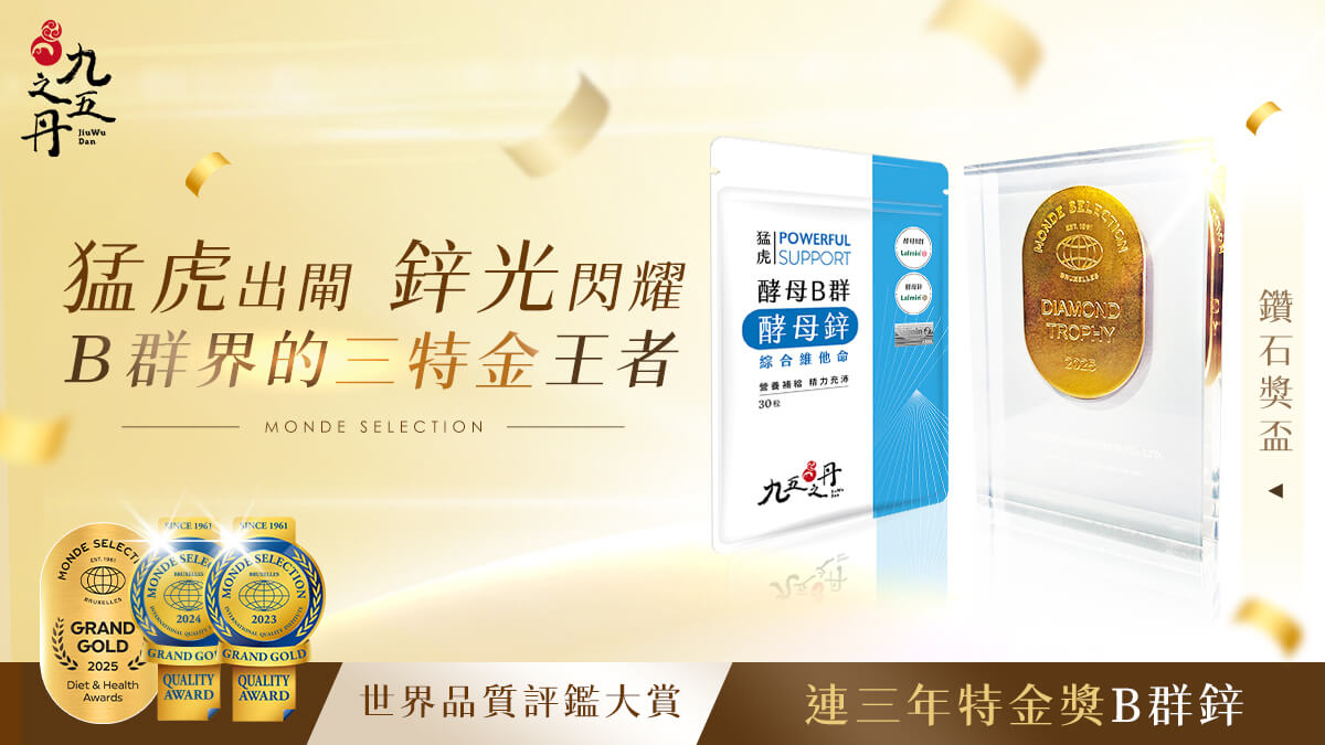 - 台灣唯一連三年世界品質評鑑特金獎B群鋅