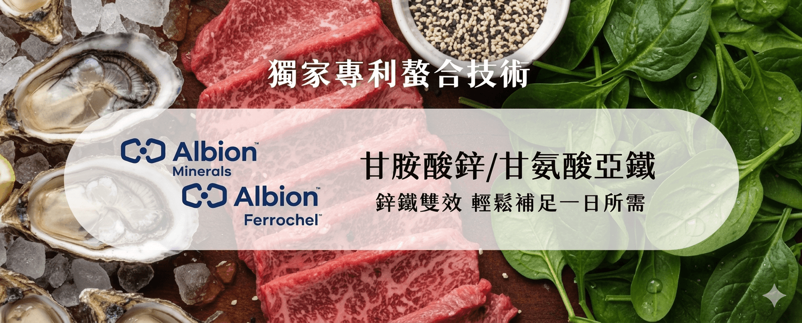 選購前,也可以先確認產品是否採用國際大廠授權的專利原料。例如美國知名胺基酸螯合礦物原料大廠 Albion 所生產的專利甘胺酸亞鐵原料 ferrochel™,這款原料經由獨特胺基酸螯合技術製成,經過大量臨床實證,結構穩定、吸收率高,採用此原料保健產品的品質與安全性更有保障。
