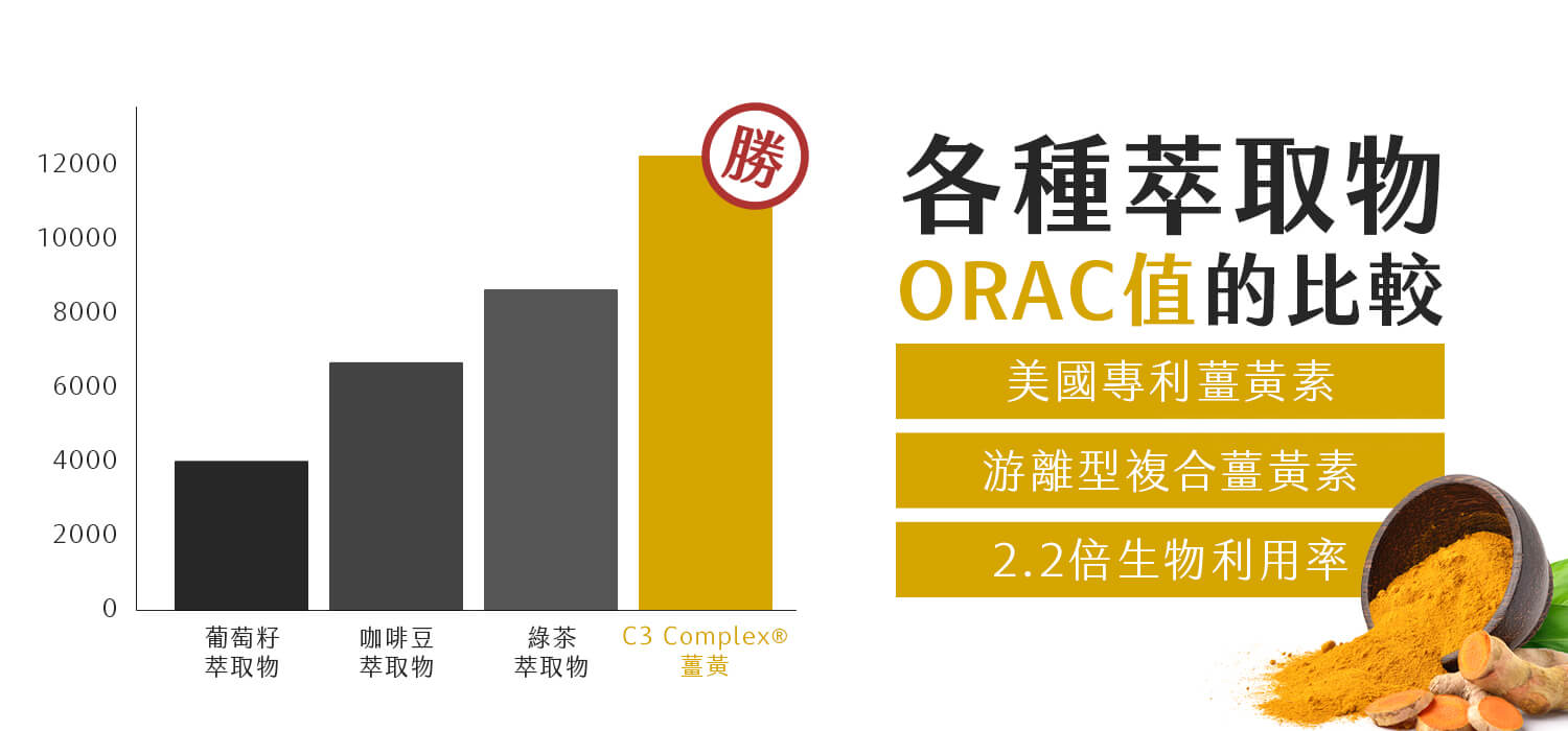 | 一般薑黃素品牌 | C3 Complex®游離型薑黃素 | |