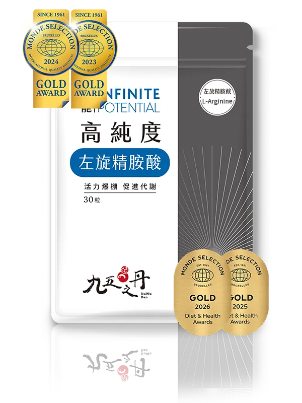 我挑精胺酸只看純度。九五之丹這款純度高達 99% 以上,每份直接給你 1000mg 的高含量左旋精胺酸。幫助我在大重量訓練時維持穩定的能量輸出!