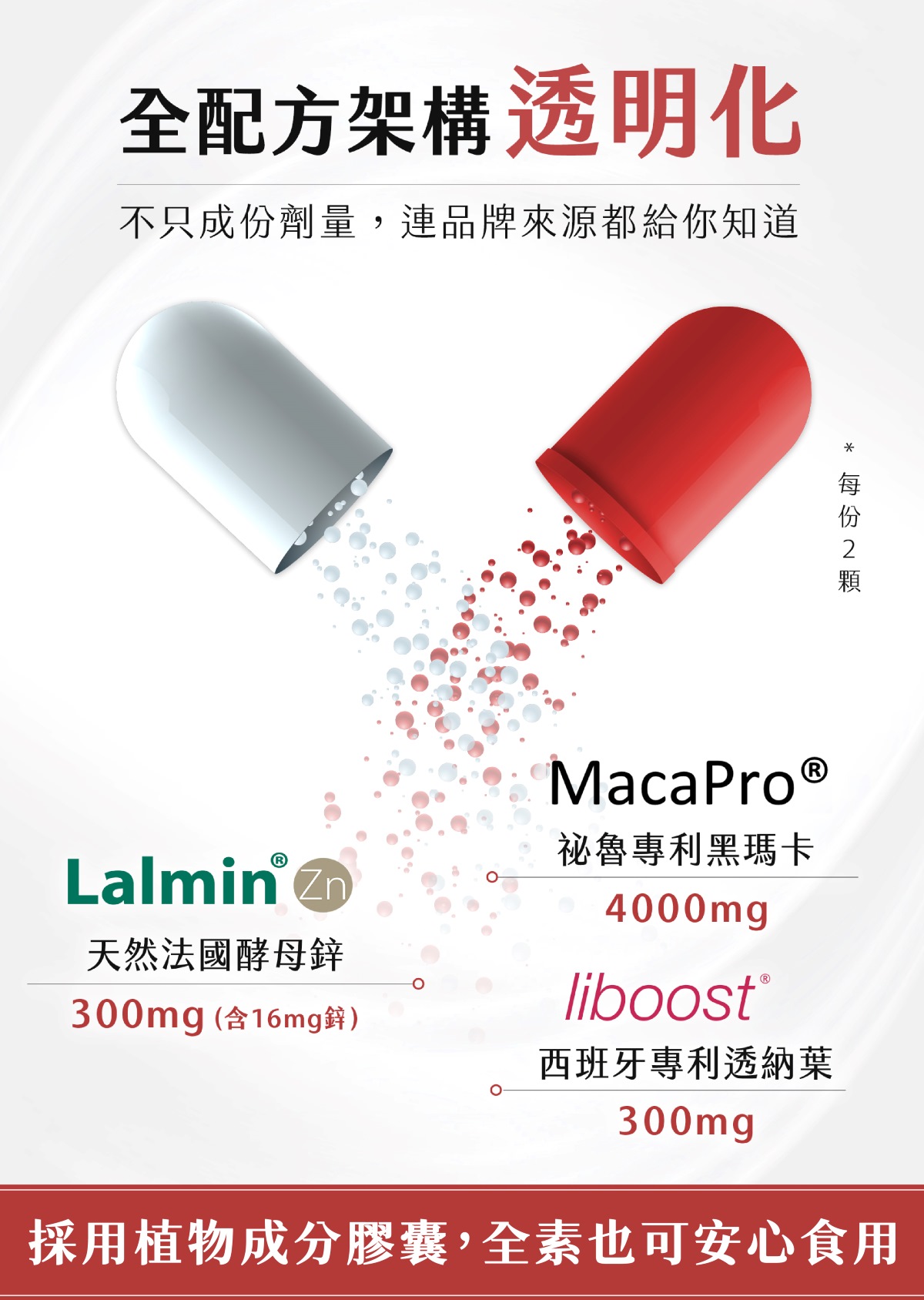 MacaPro®:黑瑪卡 Lalmin®:酵母鋅 Liboost®:透納葉