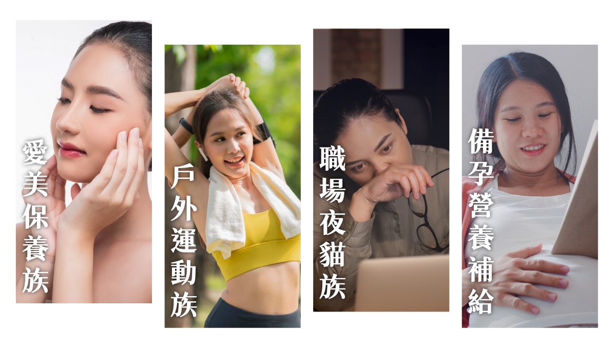 | 適用族群 | 愛美女性、壓力大上班族、備孕營養補給、外食族、夜貓族 |